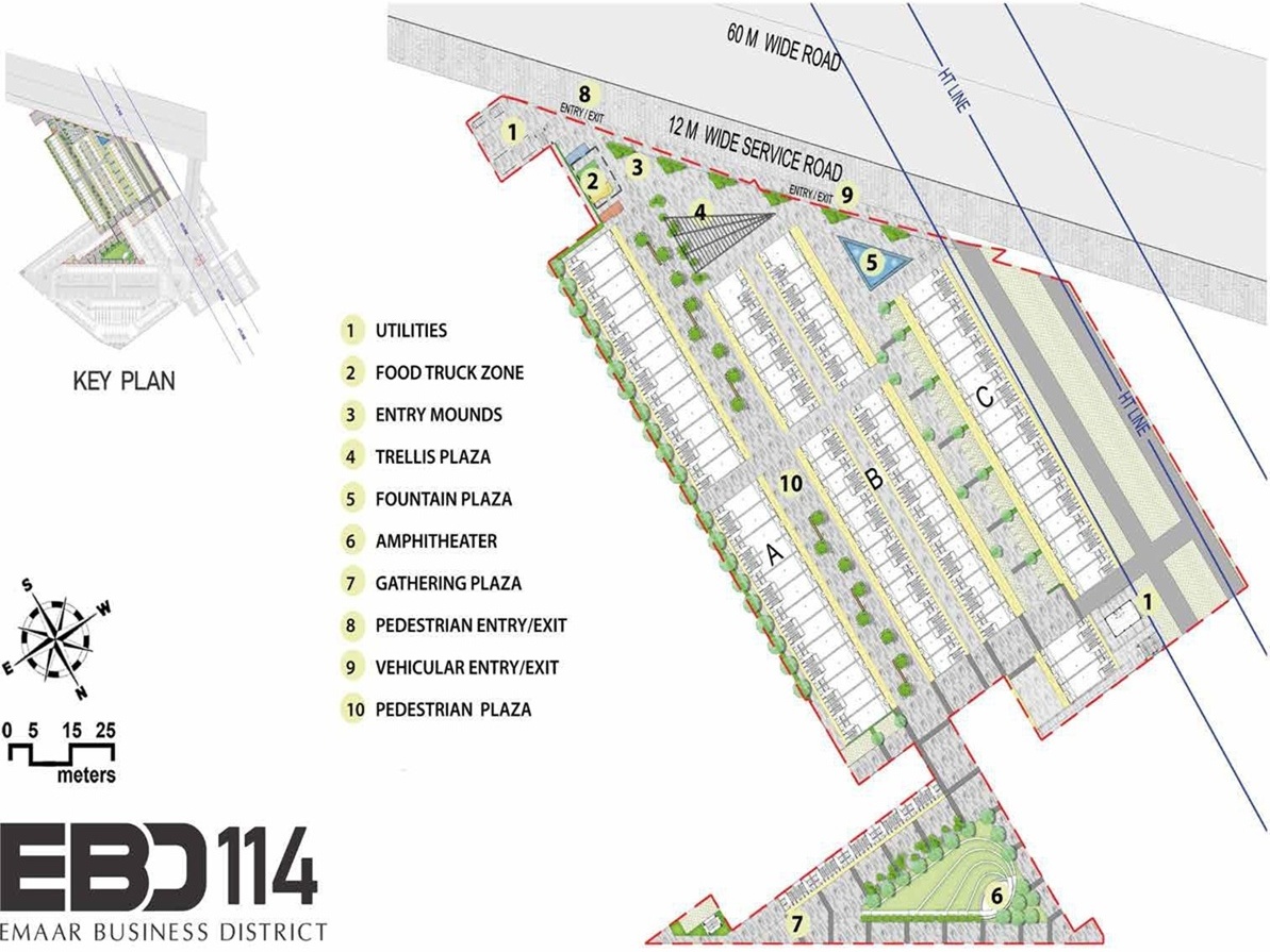 Designed to cater to modern businesses, EBD 114 features double-height retail shops, wide pedestrian-friendly walkways, and open landscaped zones, creating an engaging shopping and business environment. The project’s layout ensures maximum frontage and visibility, making it highly attractive for premium brands and investors.