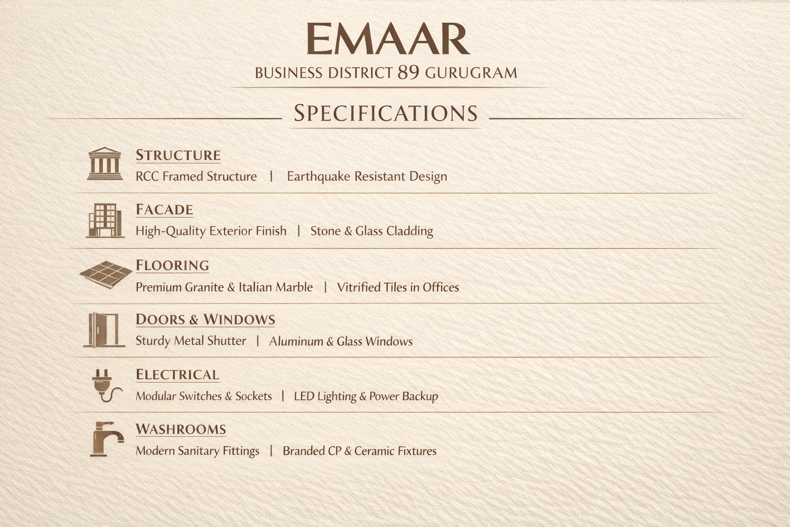 If you are an NRI or HNI looking for a stable, high-growth commercial asset in Gurugram, Emaar Business District 89 presents a perfect blend of location advantage, brand trust, and future-ready design.